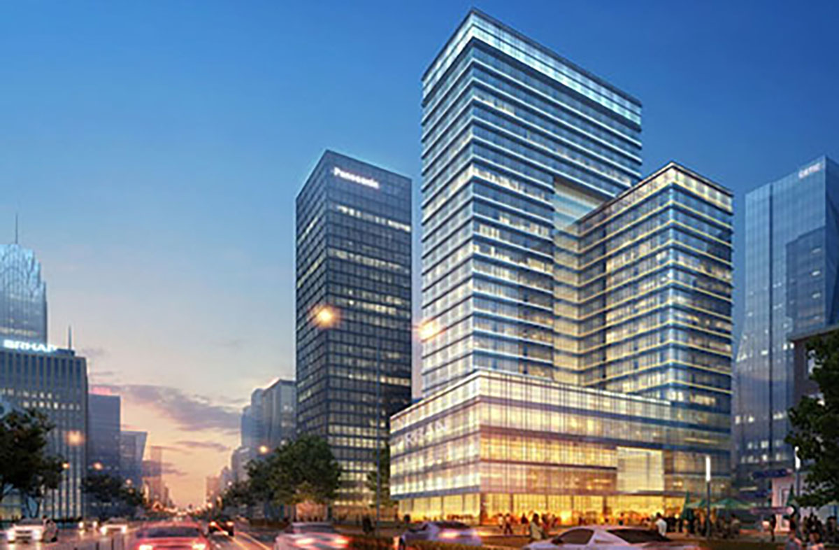 甯波金盛中心,南商之南的(de)标志性 建築。大廈坐北朝南,位于南部商務區 二期天通南路與北于泰安中路交叉口, 西于主幹道(dào)天童南路,北及東均為(wèi)寫字 樓群,南有甯波城市摩爾、甯波羅蒙環 球銀泰城等便利商業配套。項目總建築 面積3.5萬平方米,呈“L型”,全玻璃 幕牆設計,視(shì)野極佳。地(dì)上24層,層高(gāo) 3.7米,其中1-9樓為(wèi)維也納酒店,10-24 樓為(wèi)商務辦公,6部品牌高(gāo)效電梯,是 一(yī)座高(gāo)端商務辦公與酒店于一(yī)體的(de)高(gāo)檔 辦公樓。
